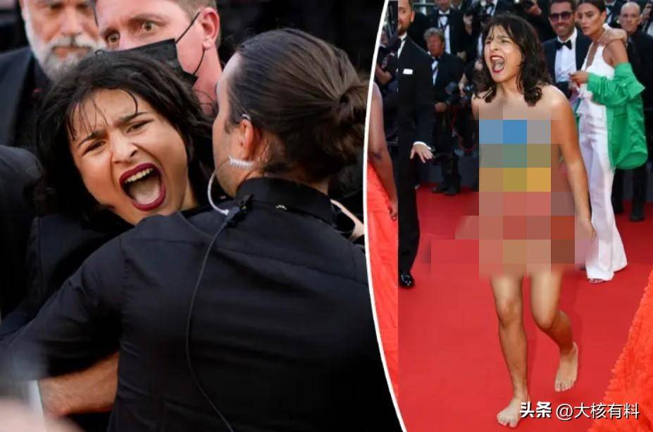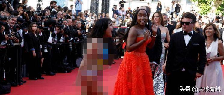 戛纳电影节当天,却发生了一场意外事故。一名女子冲进会场,在红毯上脱去所有衣服,在大庭广众之下公然裸奔,胸前还用彩绘涂着乌克兰的国旗。